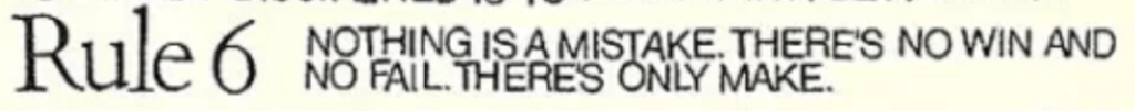 How do you see yourself in Sister Mary Corita Kent’s Studio Rule? What is a mistake in the art studio? An opportunity to explore the process, the materials, the techniques, and one’s own abilities and skills. Sure, there are lines that aren’t drawn to the vanishing point, you are still learning about the rules of perspective. Every mistake, when looked at as an opportunity, can be a stepping stone to progress in your art. Keep at it!