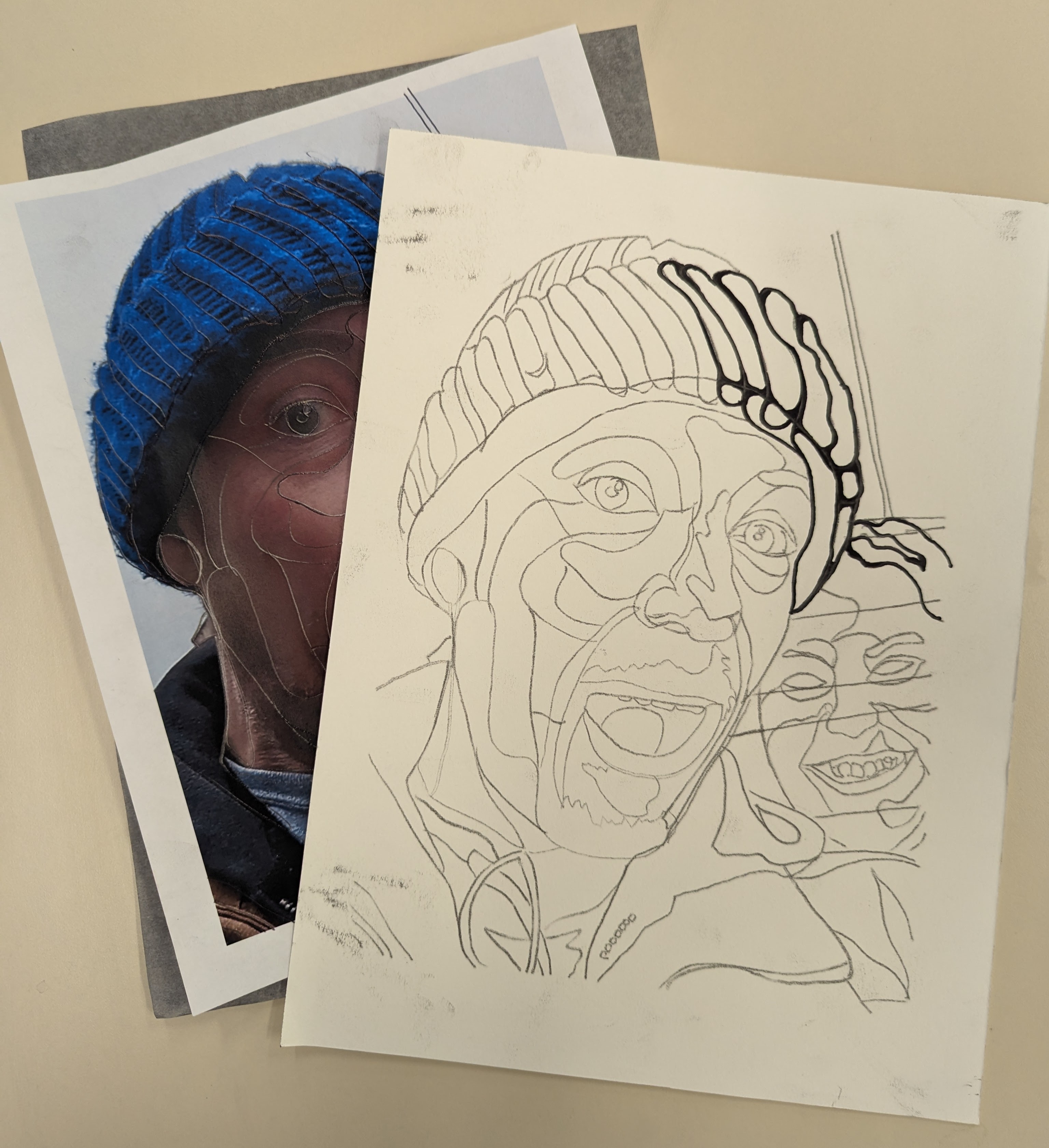 How can we SEE values throughout our faces and BREAK THEM into unique and organic shapes? David Najib Kasir uses Continuous Line Contour drawings to break his faces up. We will use photographs and carbon paper to do the same.